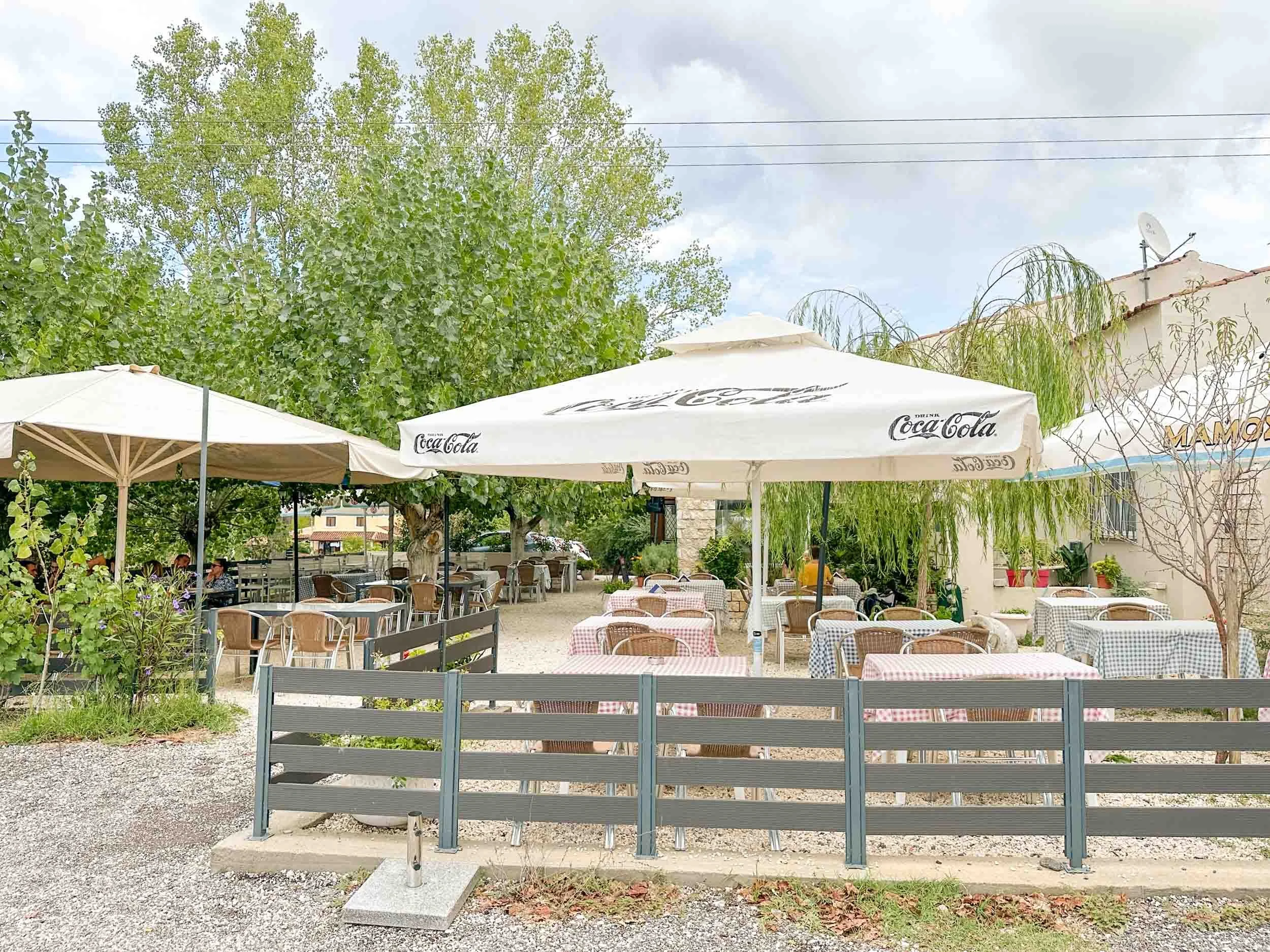 It has a large parking lot and is next to an excellent pharmacy if you need anything from there. The coffee shop also has a restroom you can use, as there won’t be another chance until you get to the olive mill (~20 minutes away).