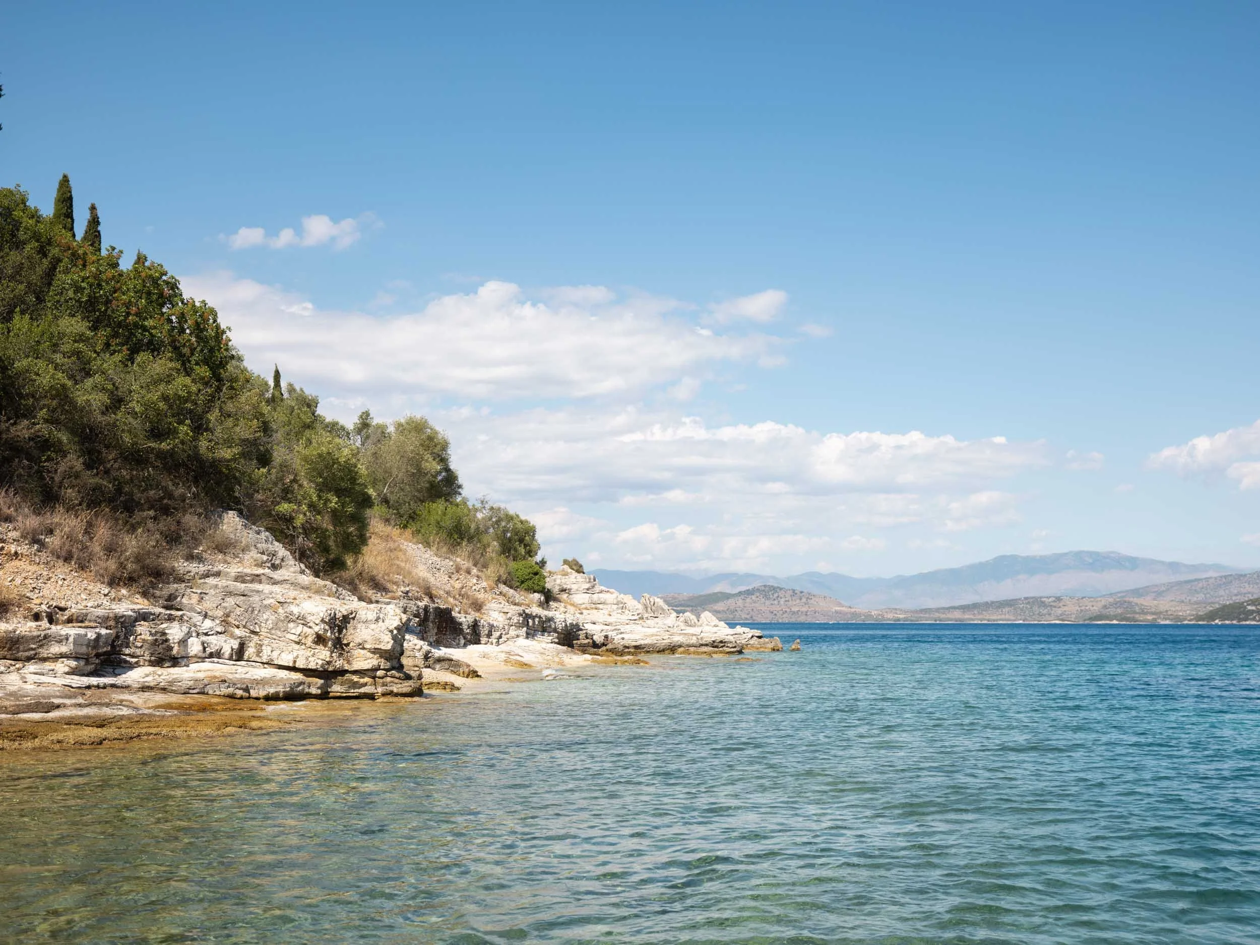 It is surrounded by the sea on three sides with sweeping views of the surrounding area. You can see Albania and mainland Greece across the sea, as well as the nearby island of Vido!