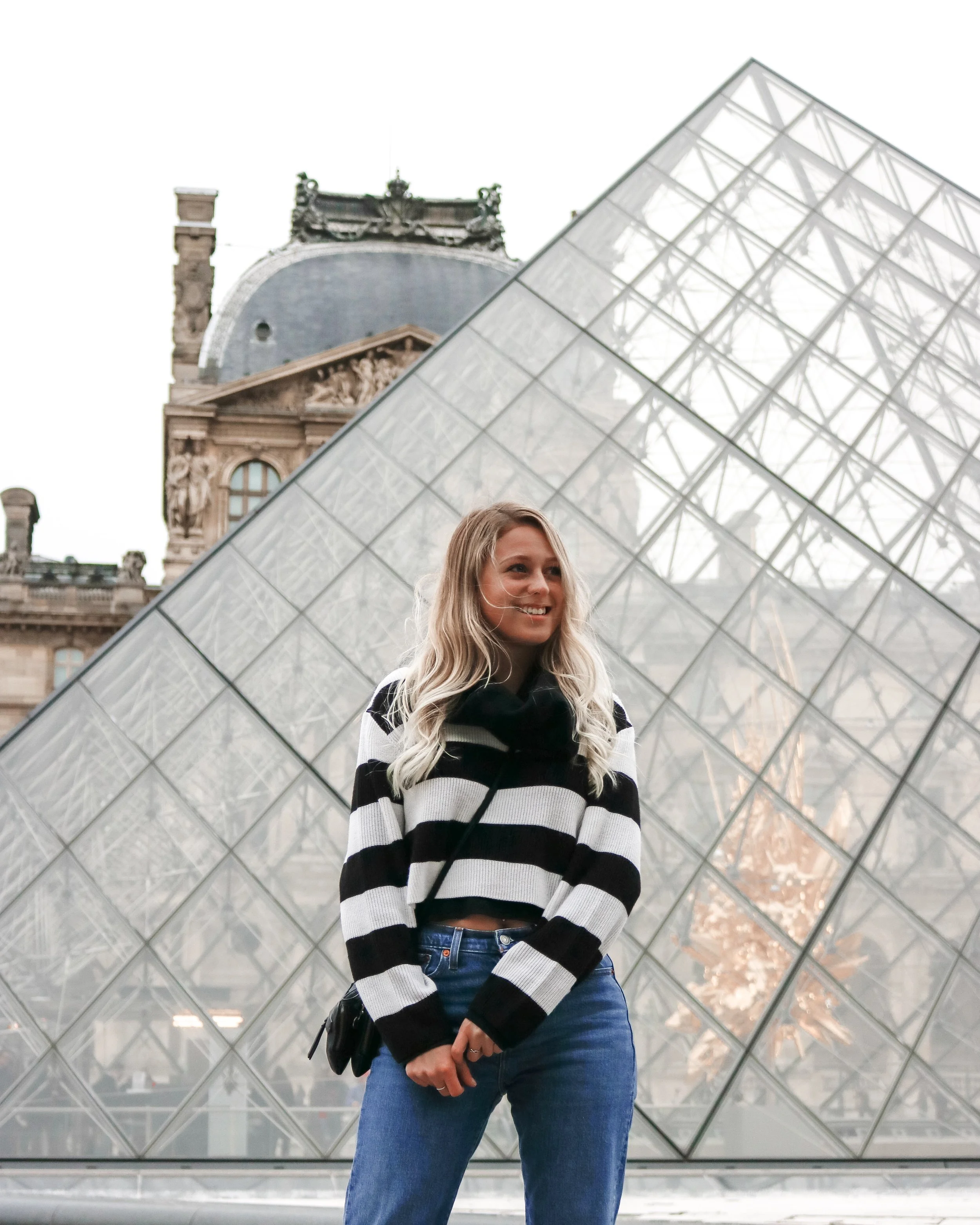 Although I was standing on a ledge in this photo, it’s possible to get the same shot standing on the ground at the Louvre if the photographer kneels down!