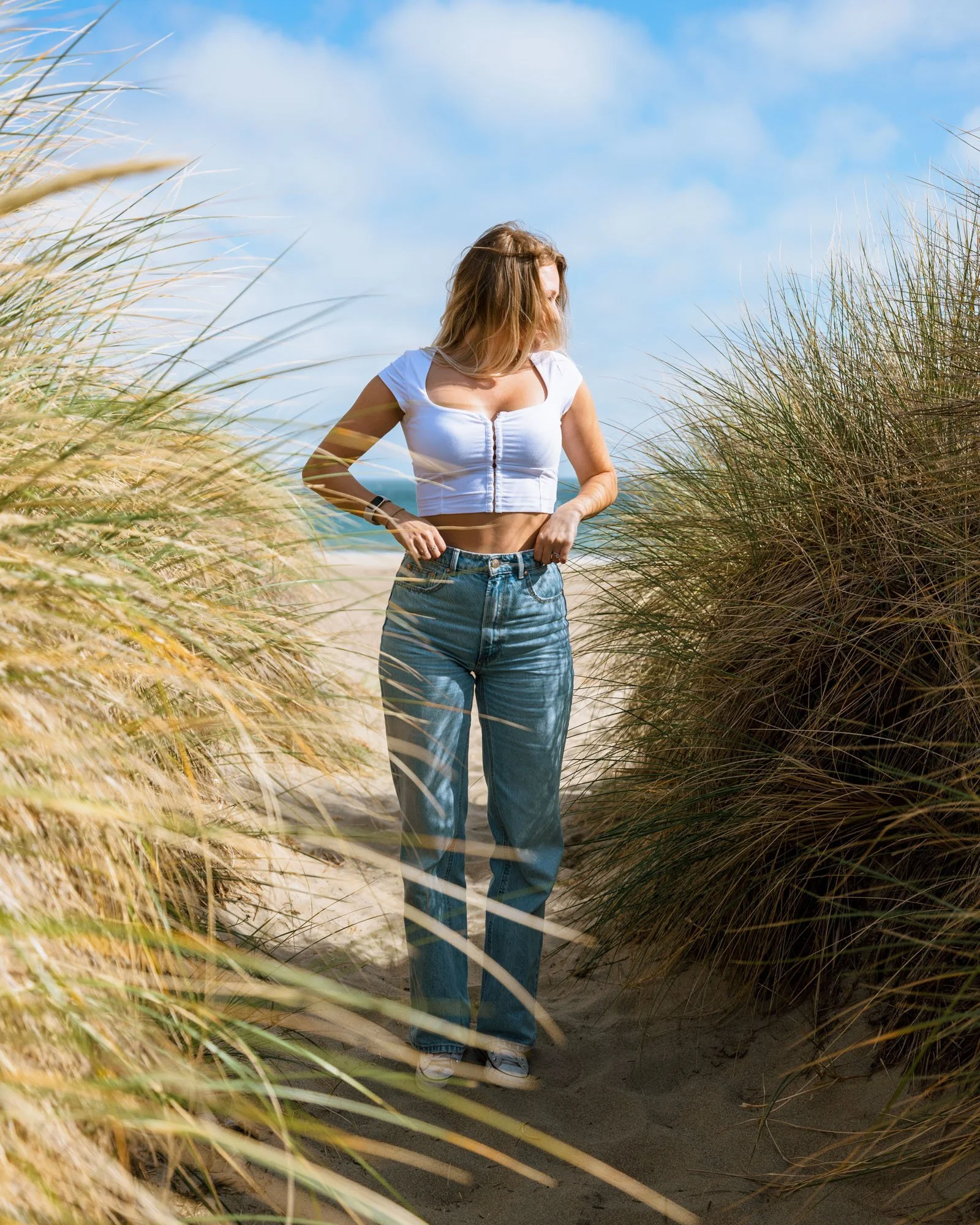 Before we reached the beach, we stopped to take some photos in the greenery that separates the beach from the trails/parking lot. Once we passed through it, the beach was incredibly windy! It was fun to walk around on the sand, but definitely wasn’t a spot to set up beach towels and sit down.