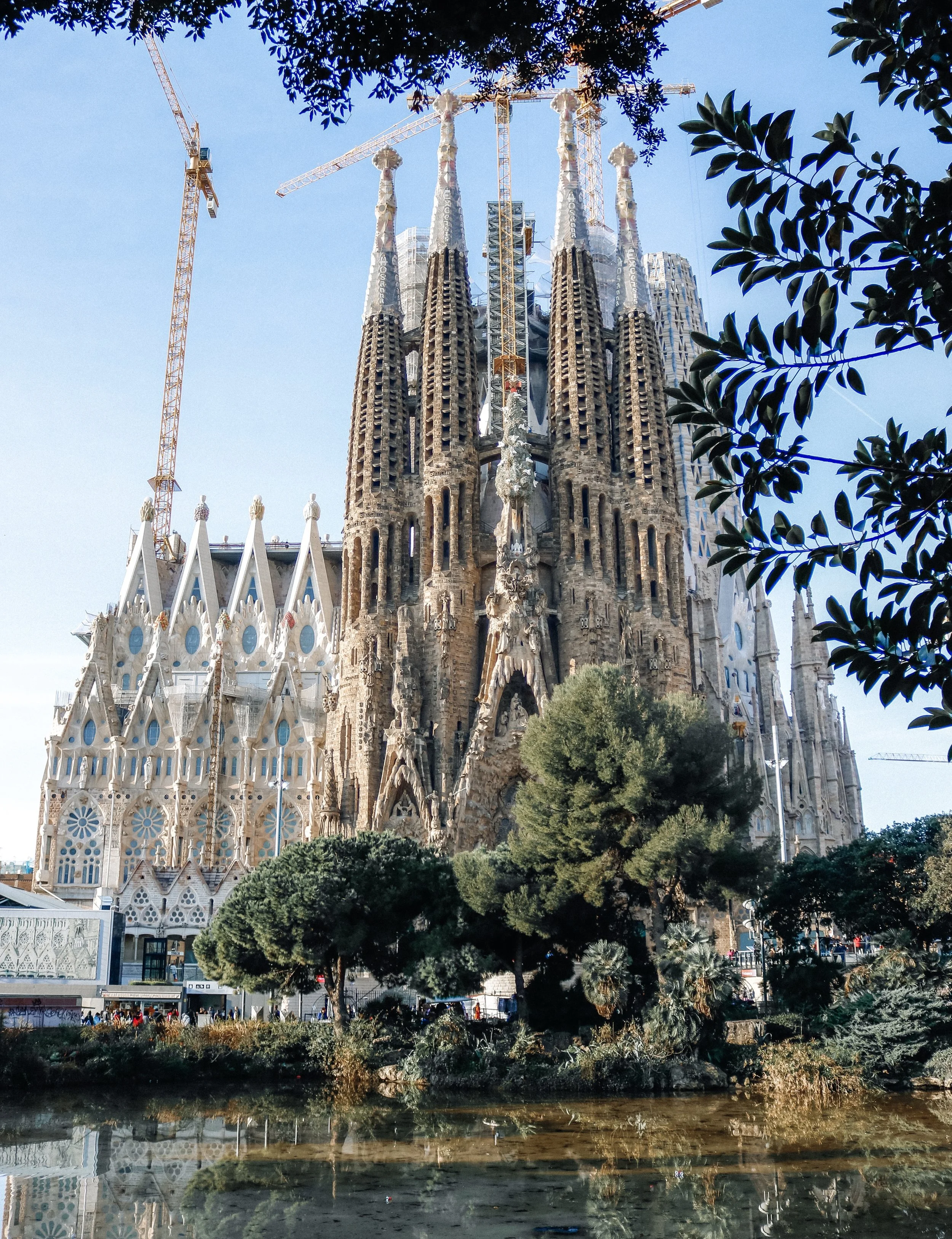 Sagrada Família: The most famous building of his is Sagrada Família, a large church which is still unfinished, is the most visited monument in all of Spain! It is gorgeous from all angles, but I recommend walking through the park across the street to get a view with the pond and greenery surrounding it. You can book a tour to go inside, but we did not.