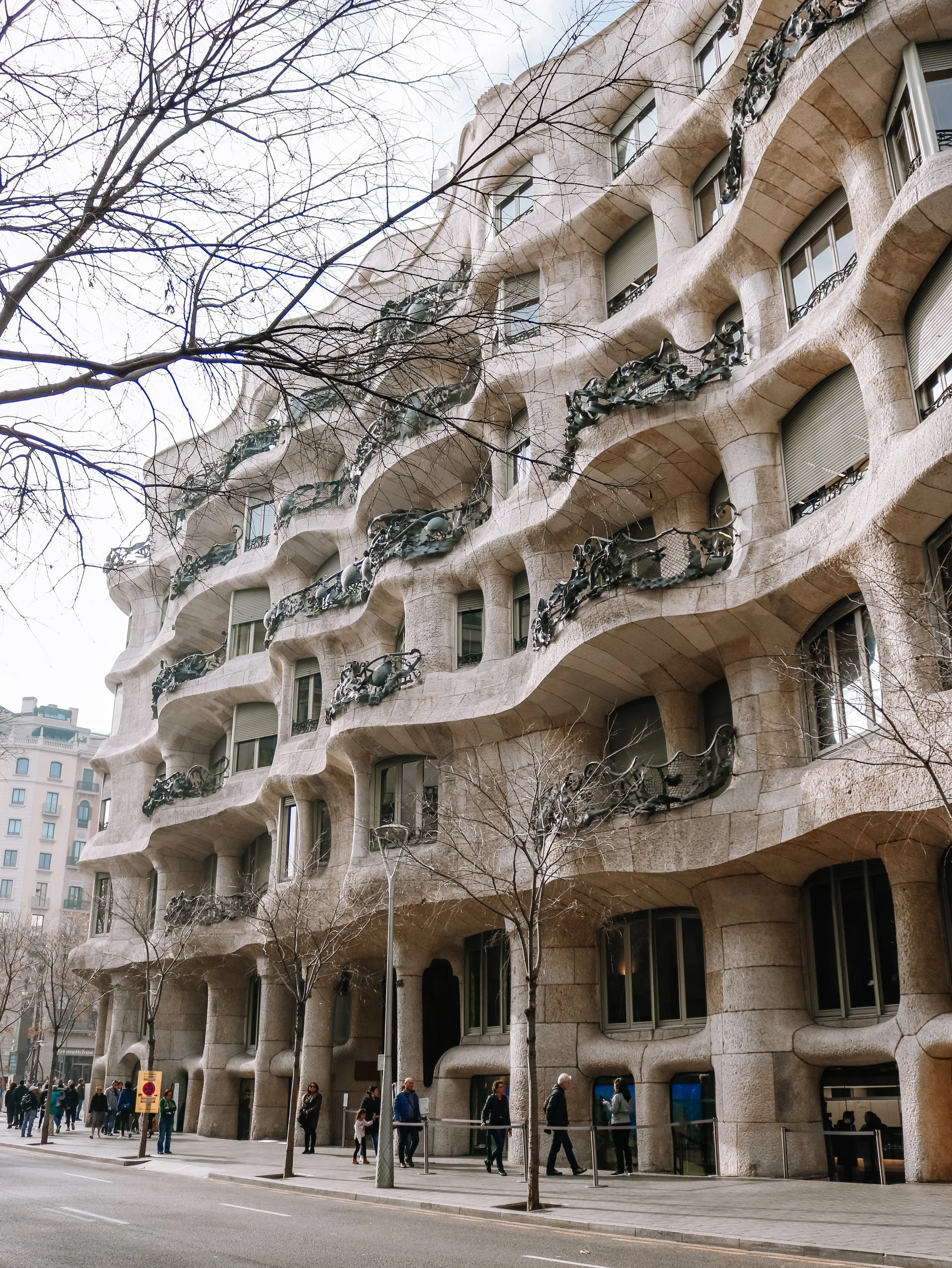 Casa Milá: Another well-known building by Gaudí, Casa Milá was a private residence until 1984 when it was declared a World Heritage Site by UNESCO. You can now buy tickets for a full self-guided tour inside and around the house, which I heard is incredible. We were on a tight budget and did not purchase tickets, but the facade itself was unusual and fun to see. Tickets can also be purchased at the entrance, but are €3 more than if you buy them online.