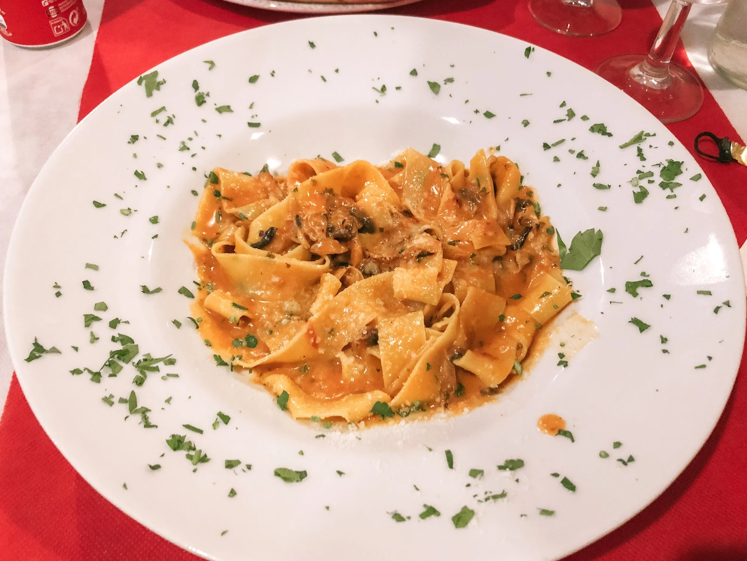 Less than a block from our hotel was an Italian food place we passed by a couple times. It gets great reviews online and has a nice menu so we decided to go here for dinner. The door to enter is low and you have to duck to get inside. Once inside you walk down stairs into the restaurant which is all underground. It has such a great atmosphere and it just felt cool to be inside. The staff was friendly and service was quick.