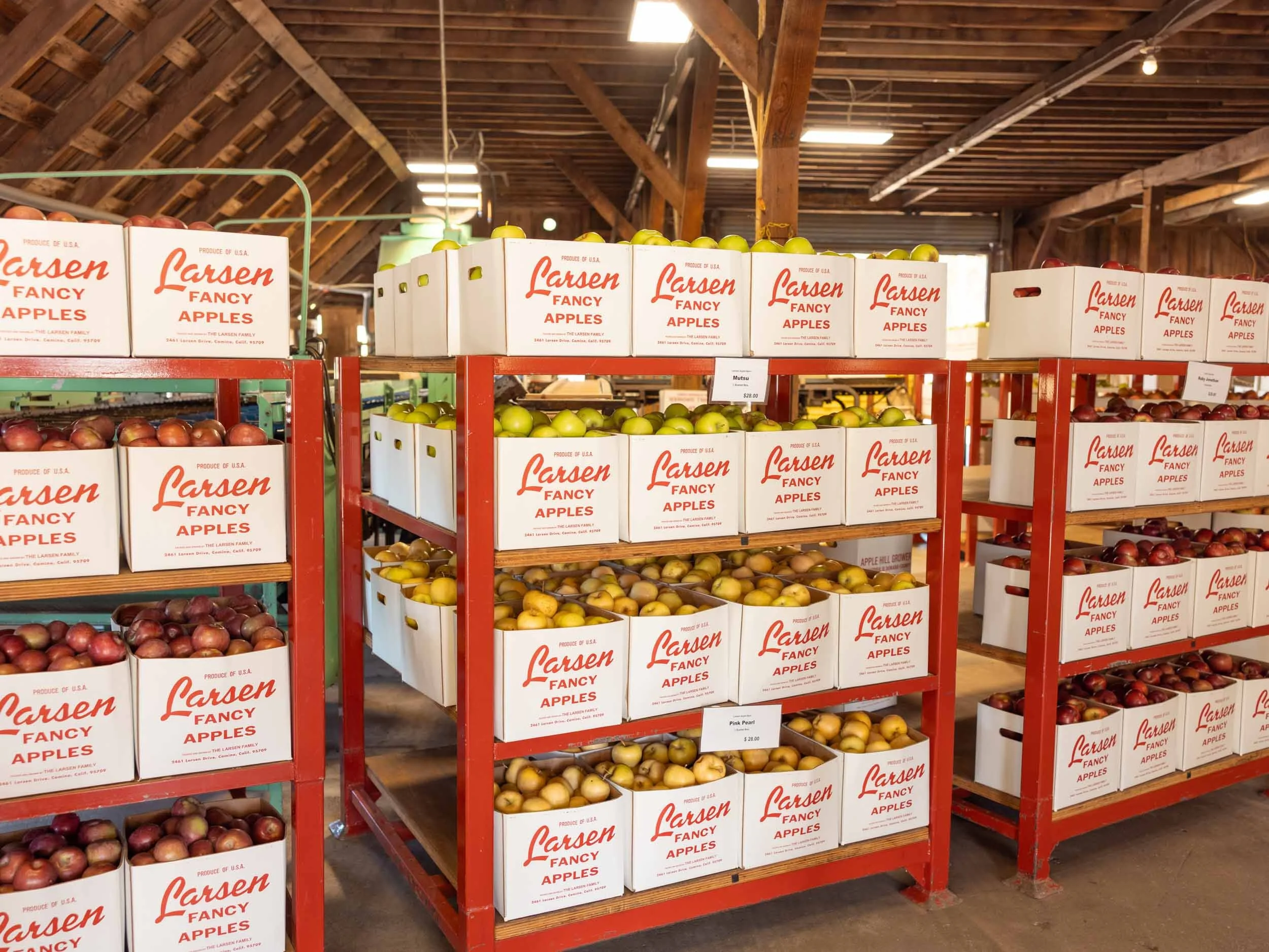 Larsen Apple Barn is the longest-running family-owned farm in Apple Hill. They have a small bakery with baked goods and lunch, a museum, and a large warehouse to buy apples and other food from their farm.