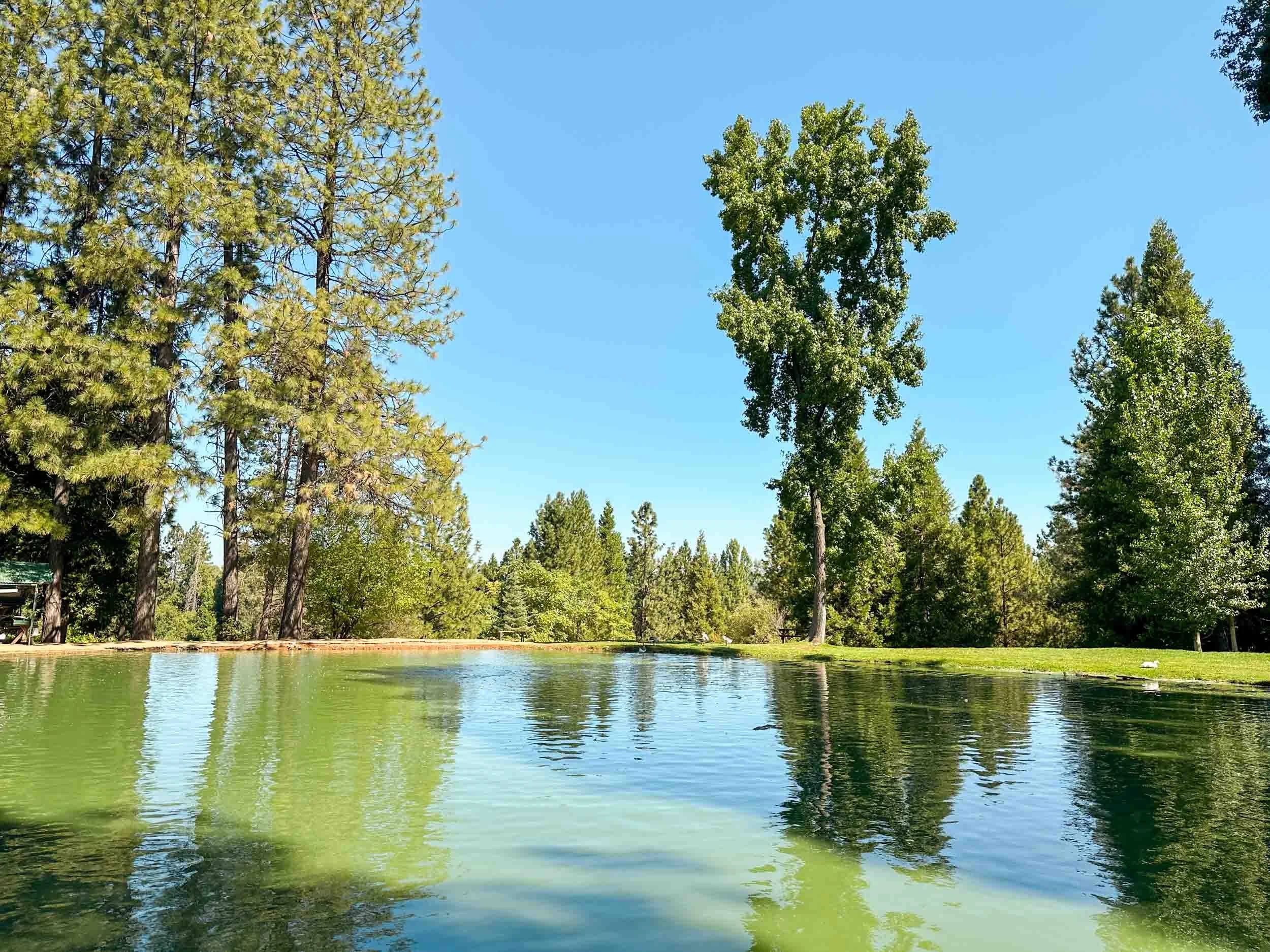 The pond is a tranquil spot to take in the views, but you can also rent a fishing pole and get a day pass to fish in it.