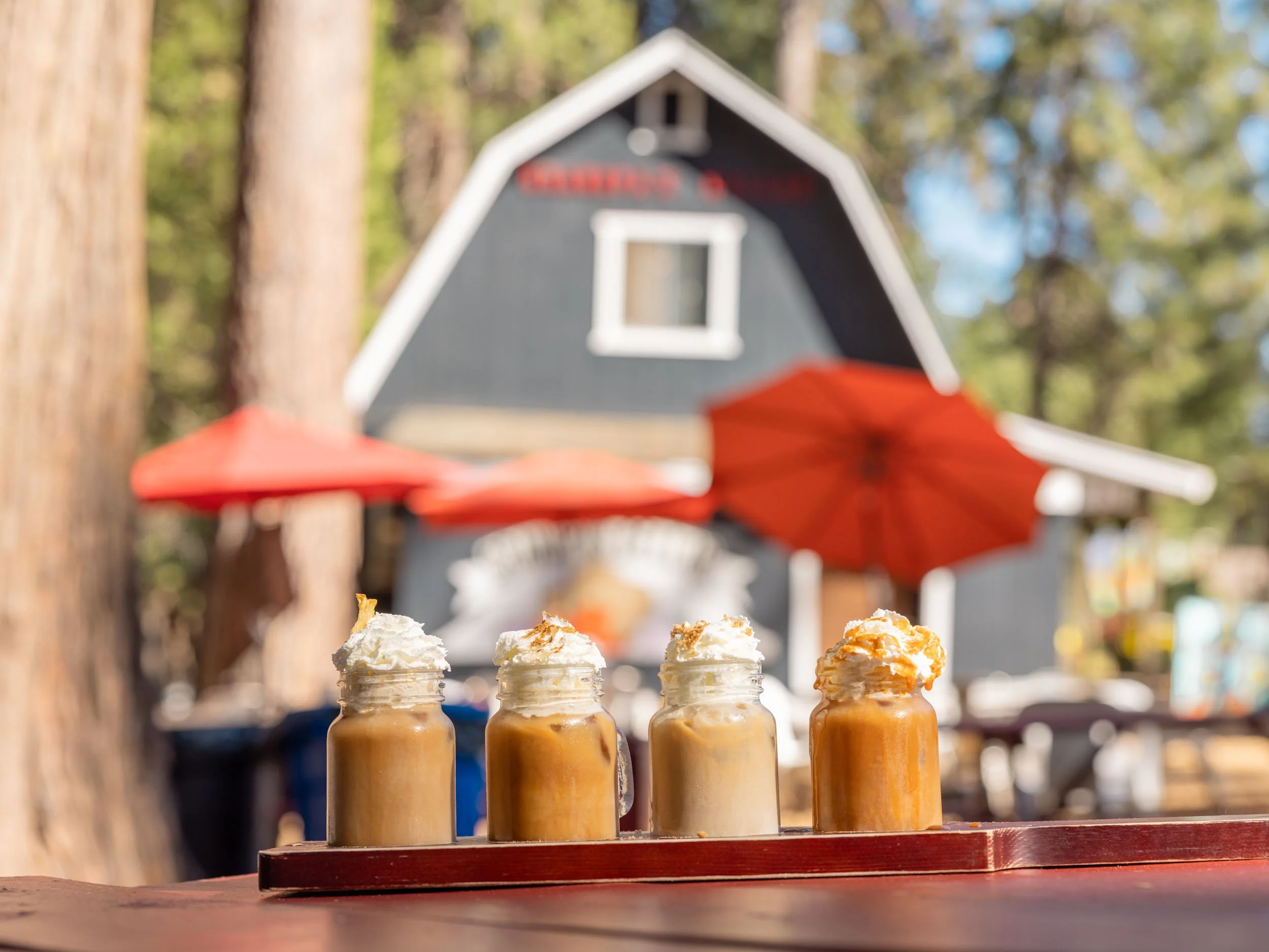 We started our second day in Apple Hill with one of the famous coffee flights from Grandpa’s Cellar. These are flights of four cold brew coffees in mini mason jar mugs, each with a unique flavor.
