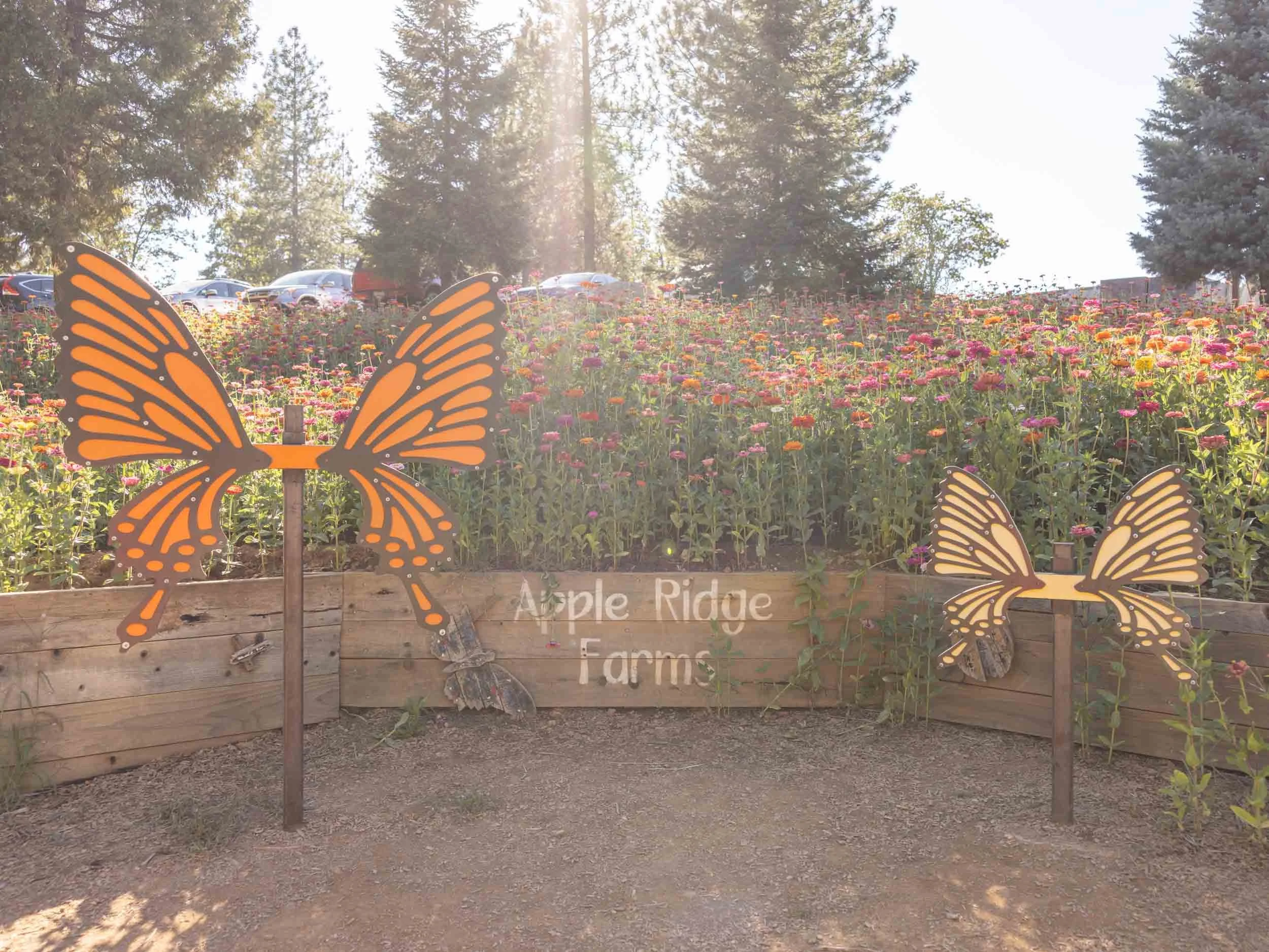 The absolute best part of this farm is the giant fields of zinnias! They’re right at the start of the nature trail towards the back of the farm (past the portapotties). The vibrant orange, pink, and purple flowers are around five feet tall and dense.