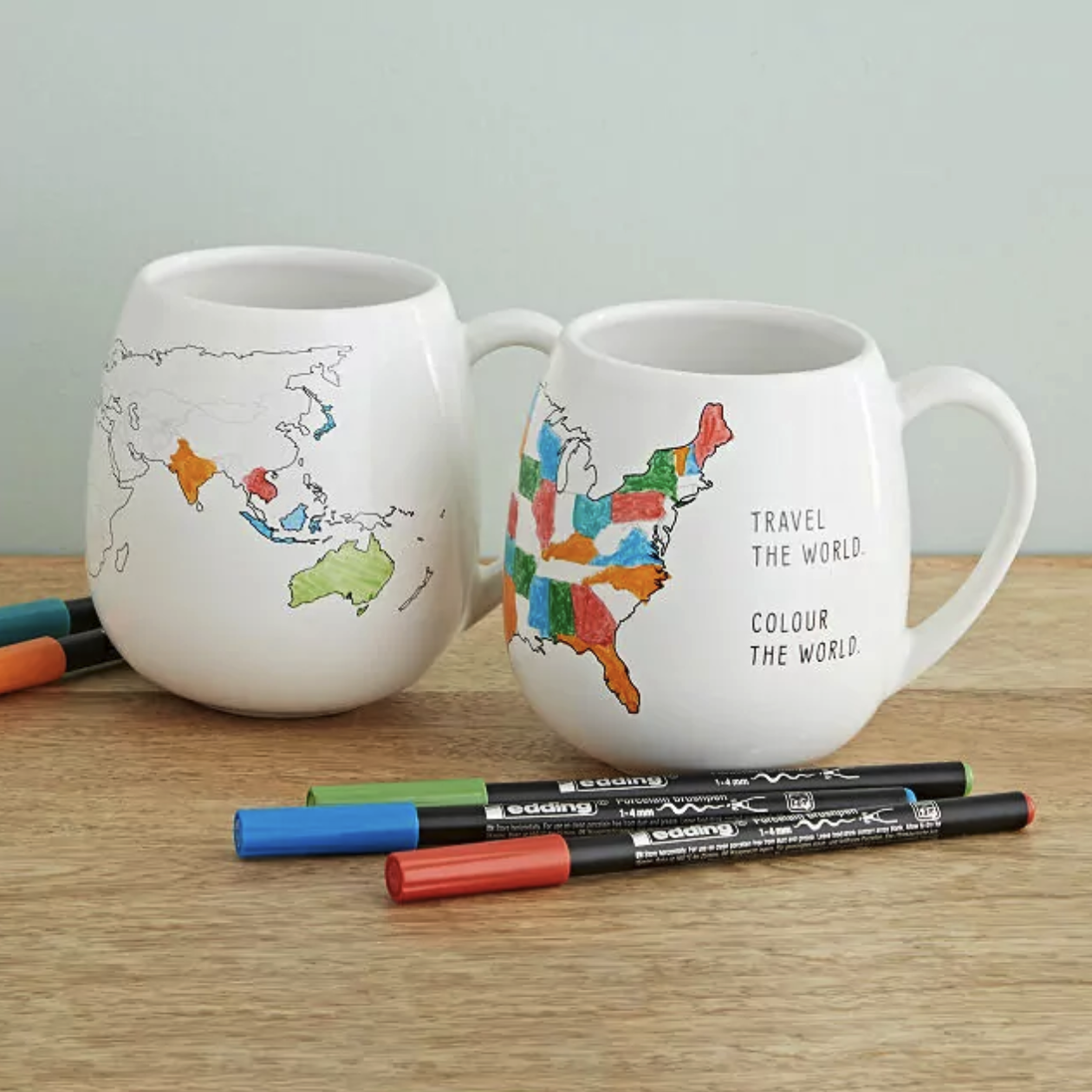 For mugs to use when at home, these map mugs are a unique gift for travel couples. They can each have their own and fill in the places they’ve been individually, or get one mug to document all the places they’ve been together.