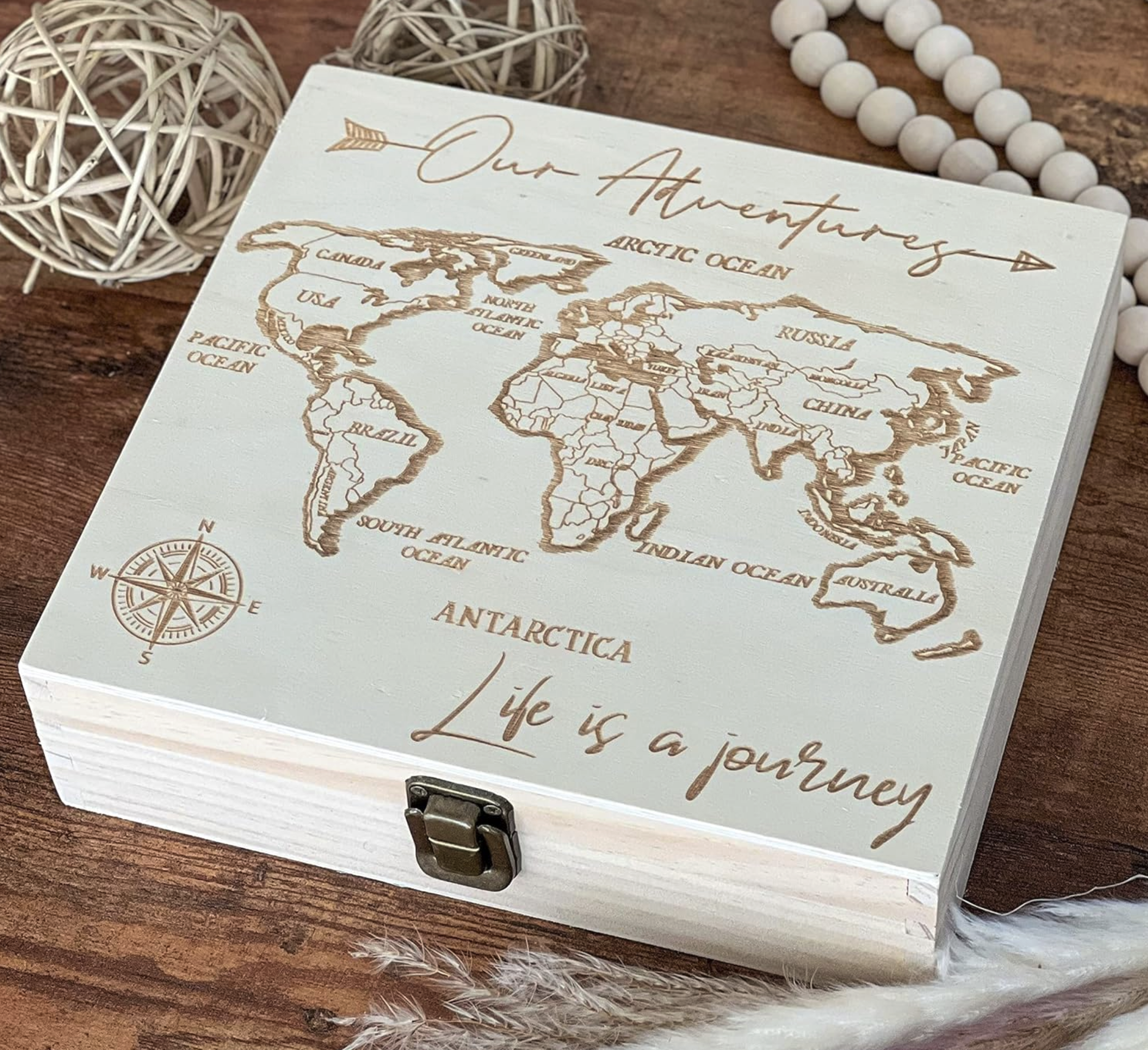 This is a gorgeous wooden box where couples can keep all their receipts, plane tickets, museum brochures, or any other memorabilia from their travels together.