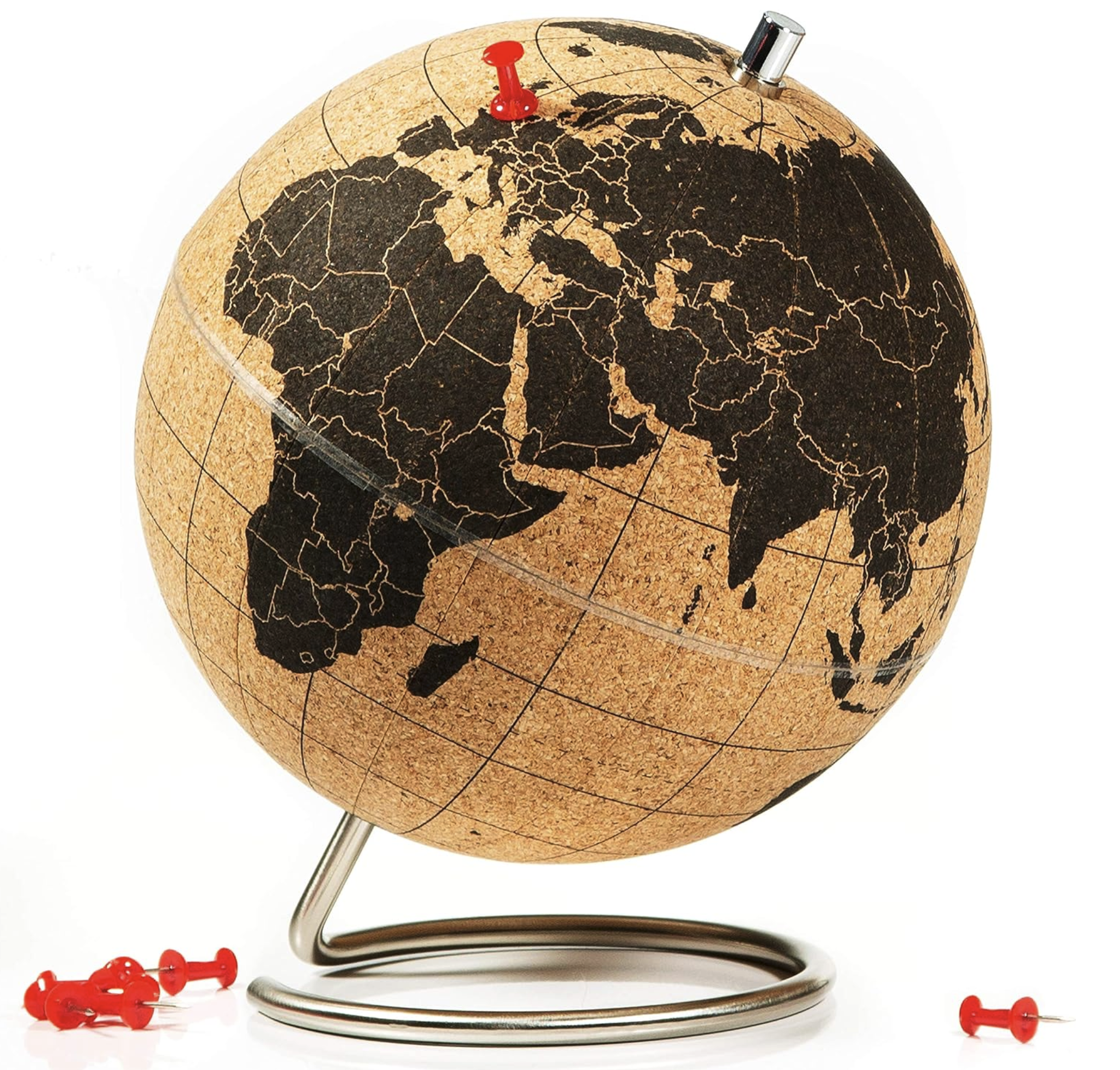 If a full wall map is too much, a cork globe is a nice gift for a traveler to visually track the places they’ve been. It comes on a stand and would look great on a desk or shelf!