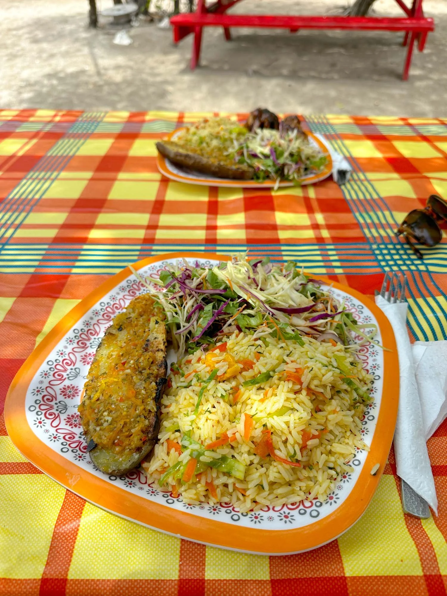 Wallilabou Anchorage: The plates of food here were delicious and I loved that they had a veggie plate! I’m not entirely sure what everything was, but it all tasted good. There’s also nothing like drinking rum while sitting inside the set of Pirate of the Caribbean and looking out at the Caribbean Sea!