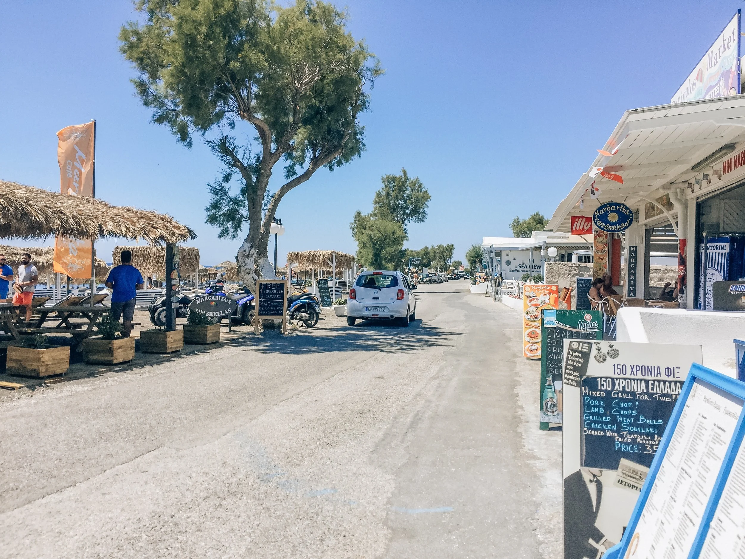 This was not walking distance from where we stayed and we did not rent an ATV (more on transportation later!), so we had one of the restaurants at Perivolos Beach call a cab for us.