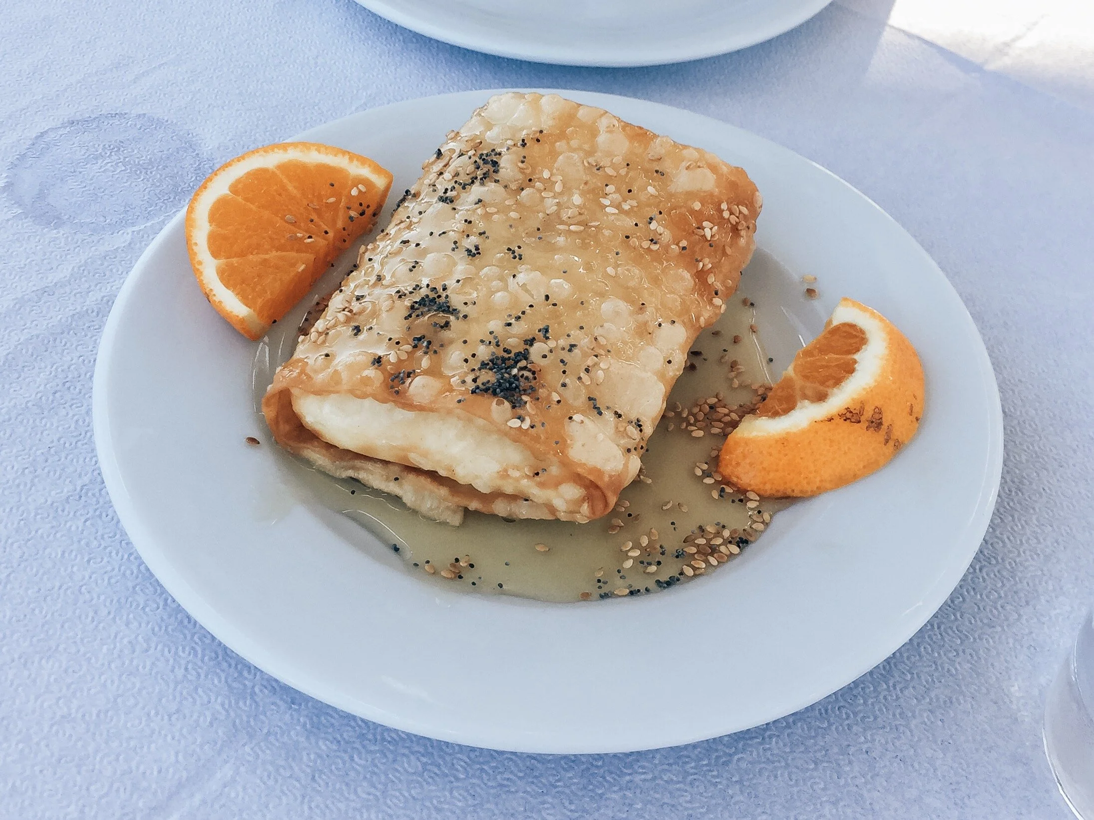 Our amazing appetizer – some sort of baked cheese thing with honey and orange