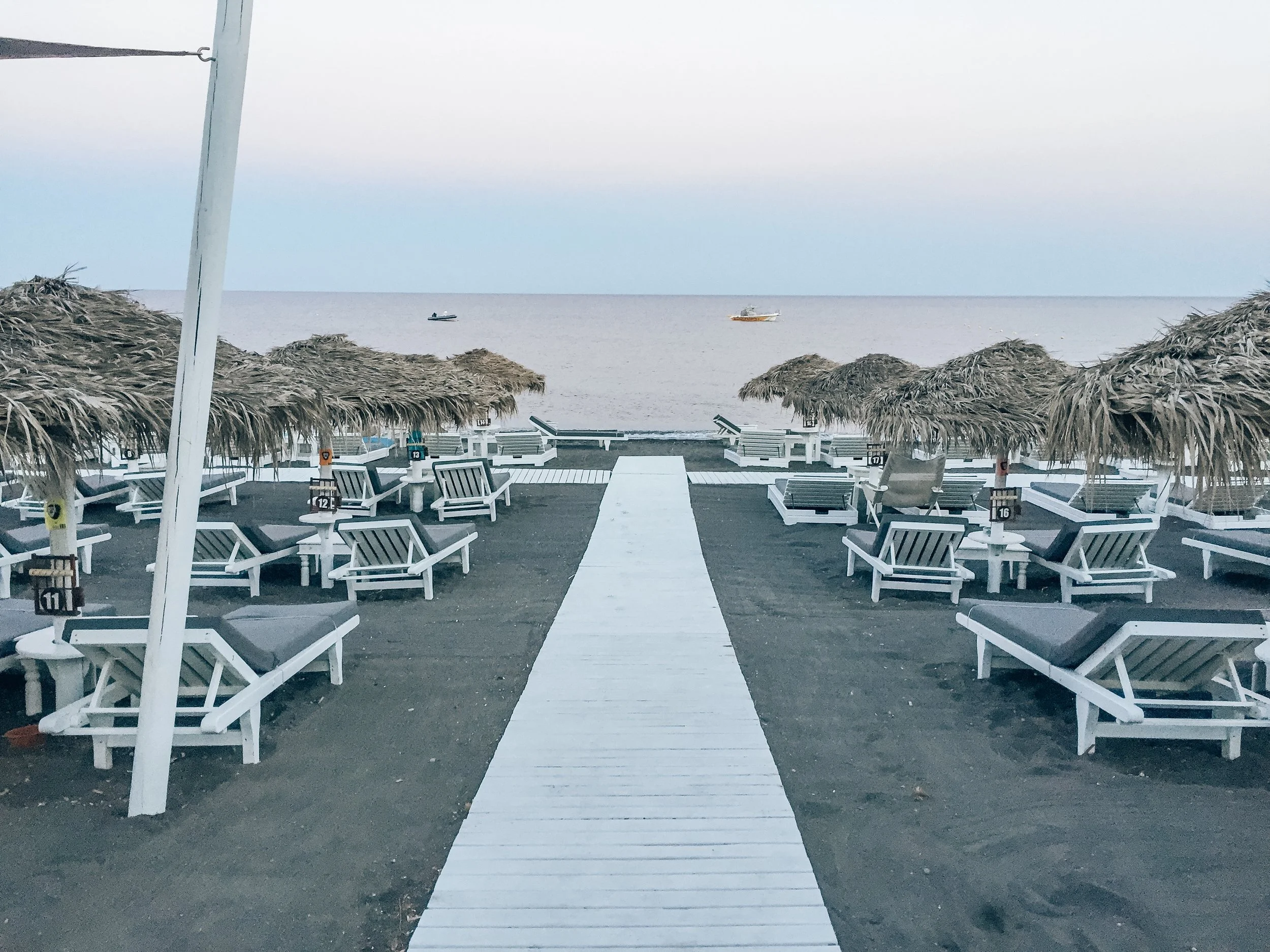 We stayed near Perissa and Perivolos beach in a hotel called Bluelife Studios. This area is in the southern part of the island while Oía is in the northern part. Our Airbnb experience was incredible and I highly recommend it! You can read about our say in my post Where to Stay in Santorini, Greece. It is available during tourist season and only cost us a grand total of $230 for 3 nights. We split the cost and could have even had a 3rd person, as there were 3 beds! Keep in mind that most AirBnb places are only open during tourist season starting in June.