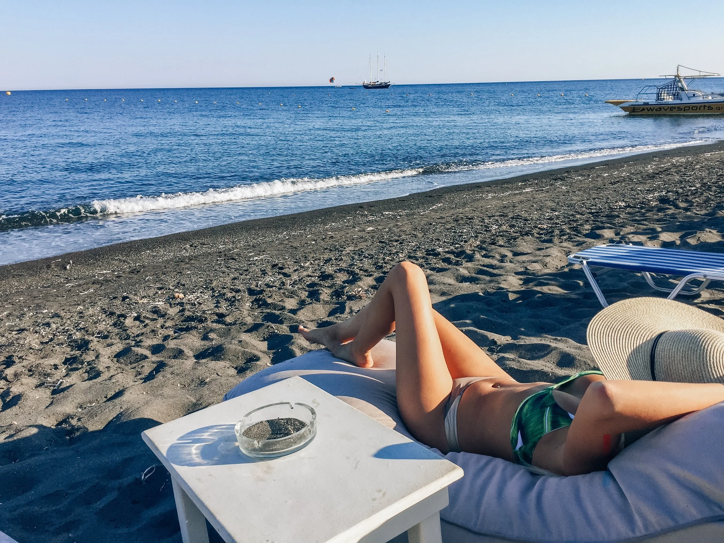 We landed in Santorini at 8am, took a taxi to our Airbnb, and after setting down our bags, we promptly got into our beds and took a much needed 2-3 hour nap (I'm exhausted just thinking about it!). There was already an 8 hour time difference for me from California to London, but there was another 2 hour time difference from London to Greece. Safe to say I was a bit jet-lagged.