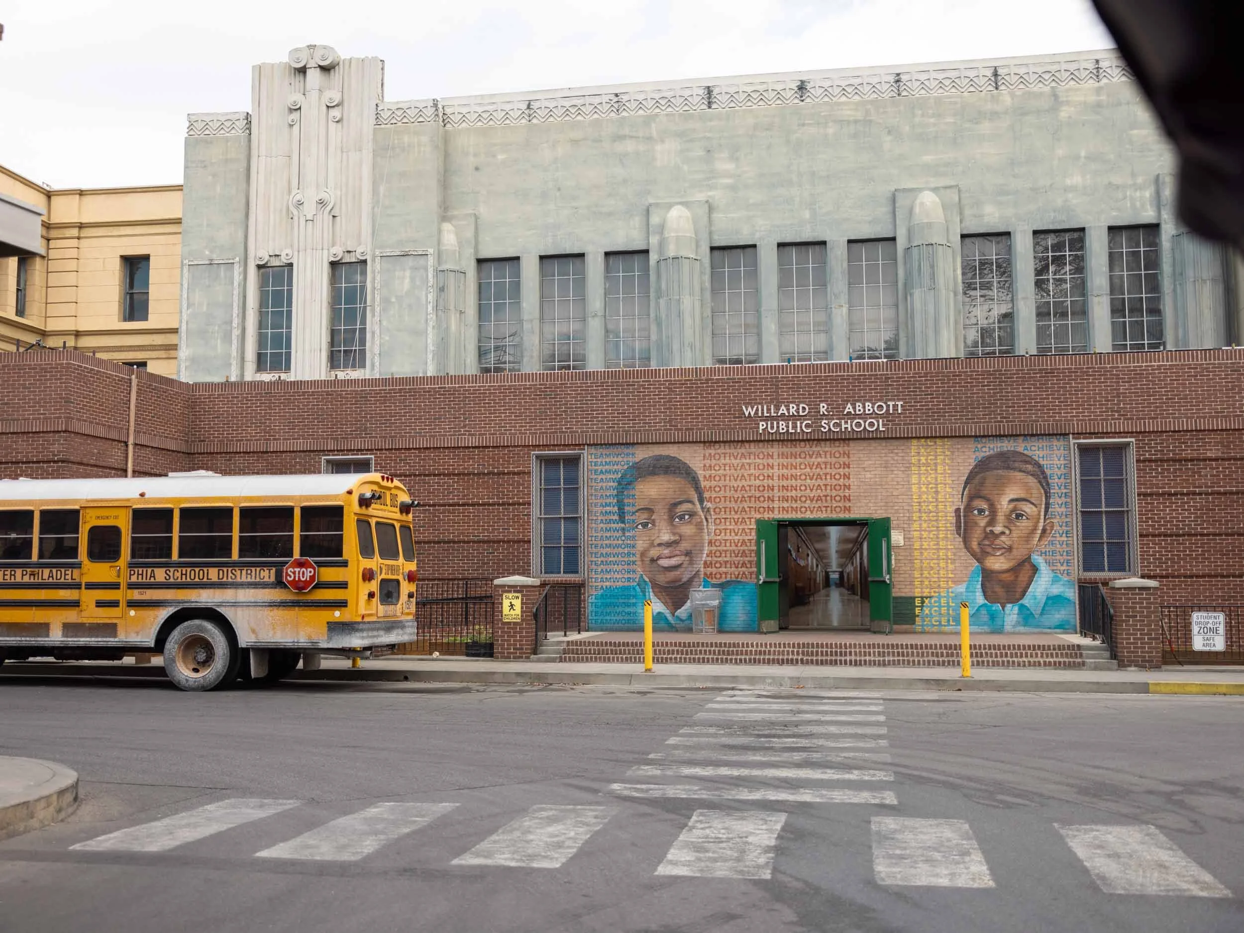 If you visit on a weekend, there won’t be as much activity as there is on weekdays when actors and production teams are working. When we were there, Abbott Elementary was currently filming, and we got to see the building used as the exterior for Abbott Elementary with the mural.
