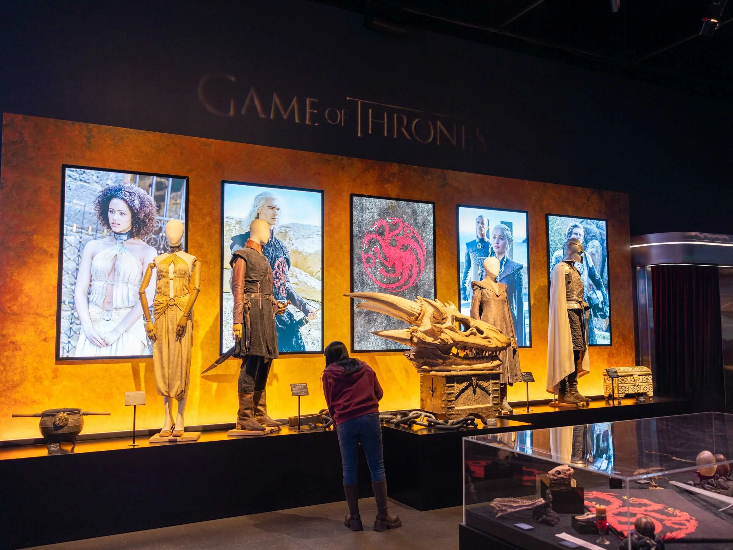 For Game of Thrones, they have costumes on display for four characters: Missandei, Viserys Targaryen, Daenerys Targaryen, and a House Targaryen Kingsguard uniform. There are also some other smaller props and things from the show in display cases.
