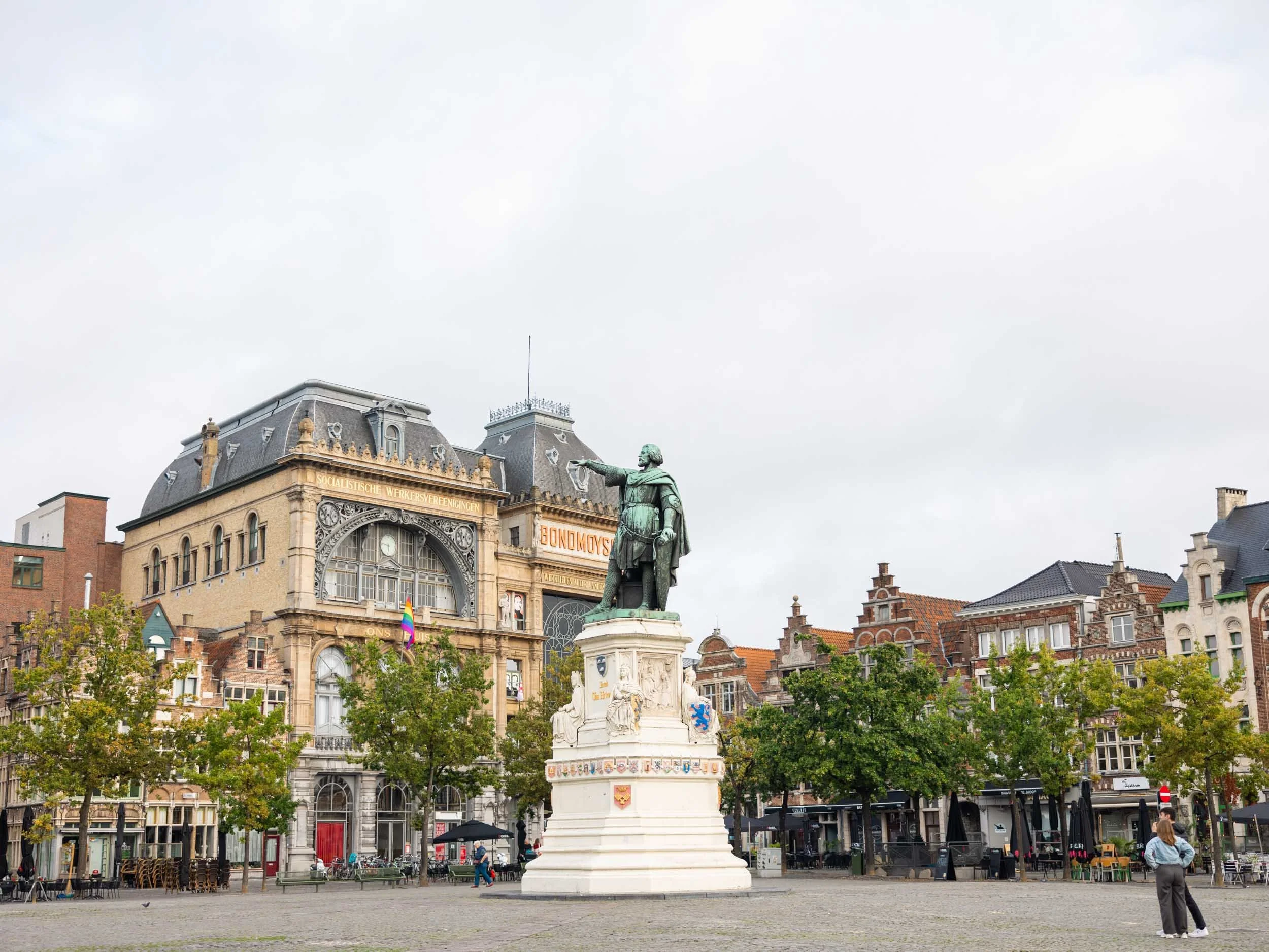 In a large square, the tall statue of Jacob van Artevelde quickly caught my attention. The square was empty and quiet on a weekday morning but is home to the Vrijdagmarkt (in English: Friday market) which, no surprise, takes place every Friday.