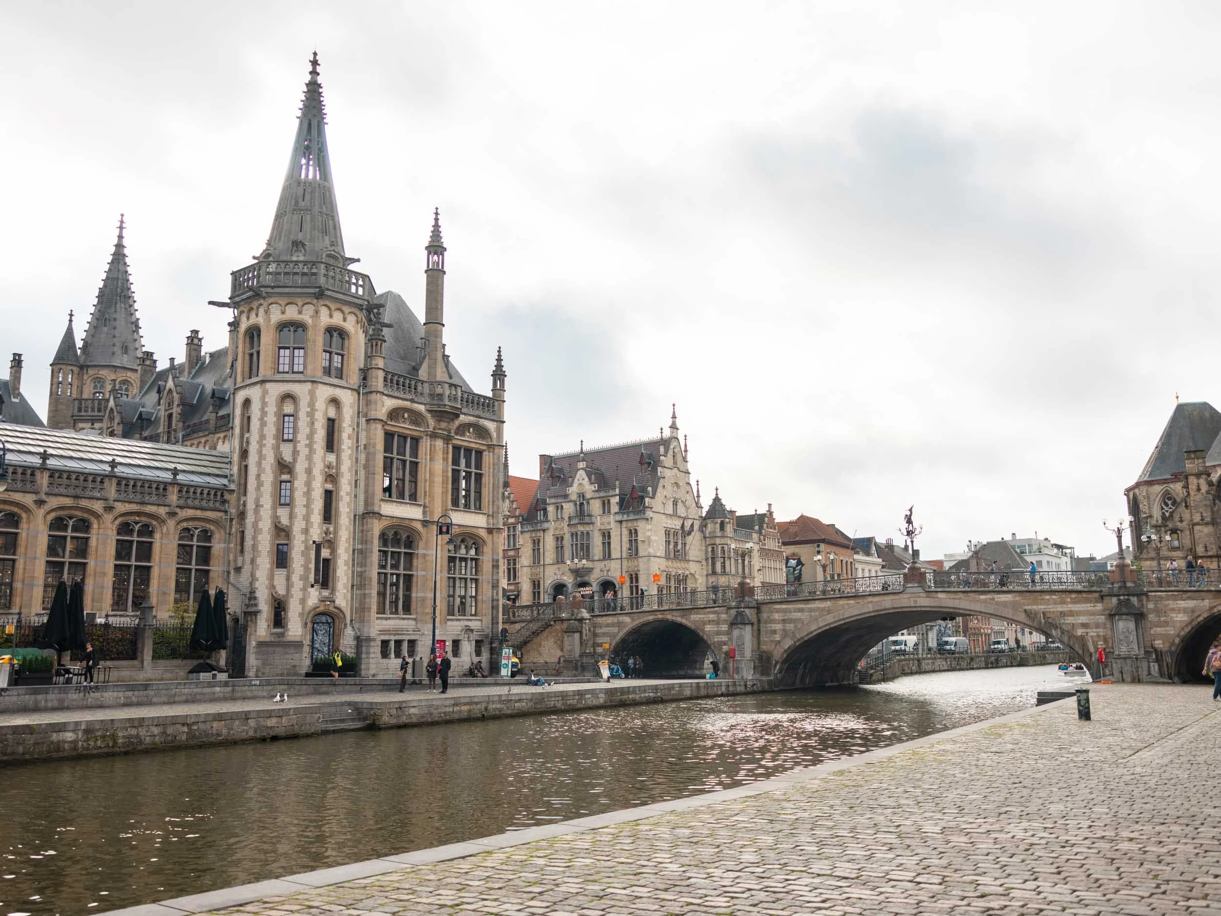 The castle sits right on the edge of the River Lys (or Leie) and we spotted multiple boat tours float past it — a fun and unique way to see the city!