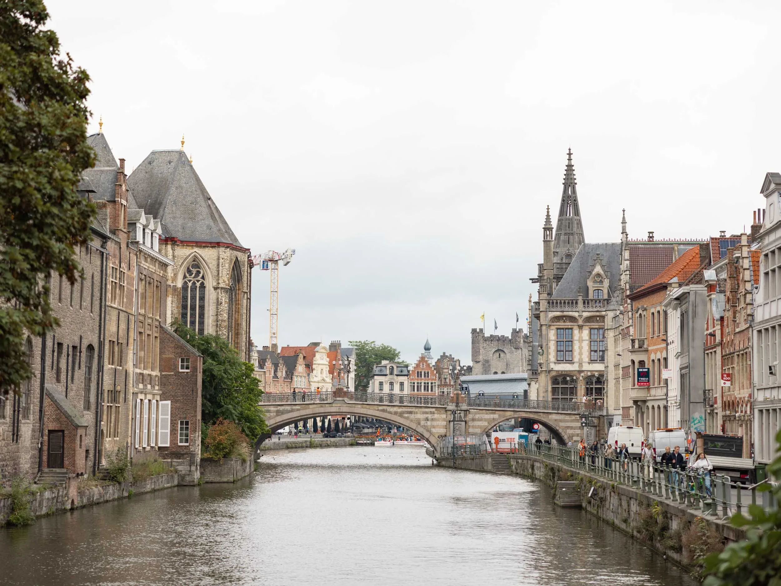 From the bridge, you have multiple backdrop options, including Saint Nicholas Church, Graslei and Korenlei, or Saint Michael’s Church. It’s easy to get three completely different photos from one spot!